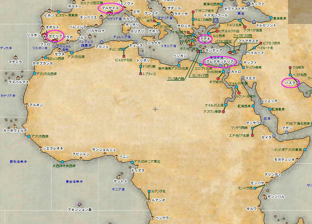 アレクでクエ請け→アテネ→マルセイユ→セビリア→バスラ