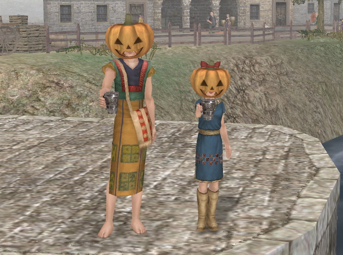 かぼちゃ頭は、女の子がかぶるとリボンがつくんですよ♪