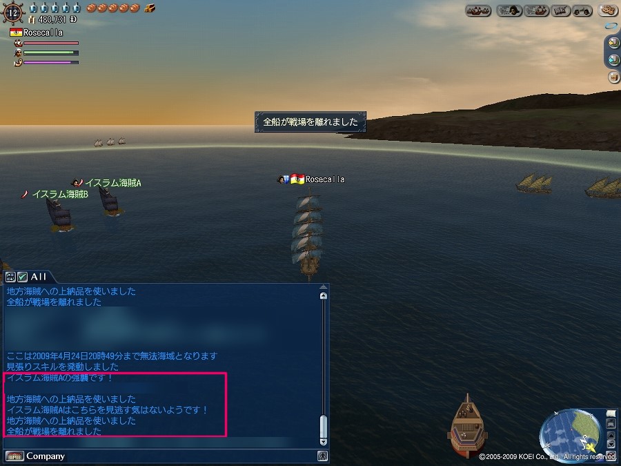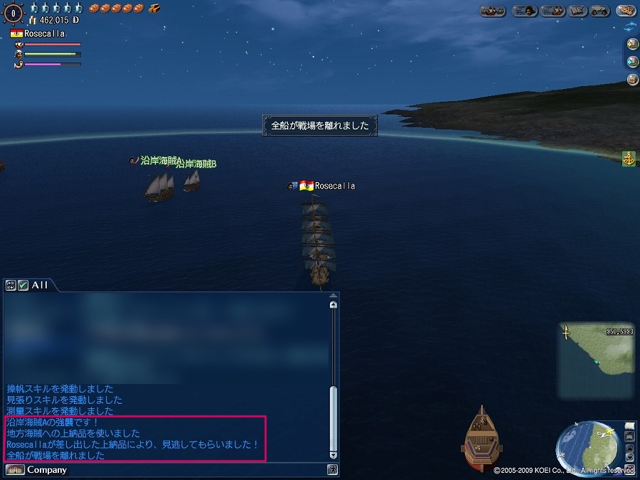 えと、普通の危険海域で襲われて上納品を使った時って、