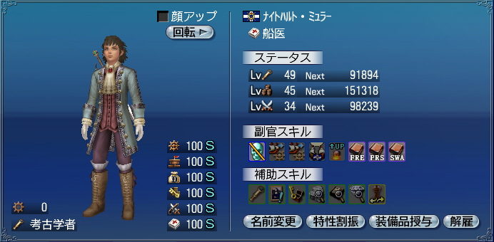 副官の特性値がオール100Sになりました。+.゚ヽ(*´∀`)ノ゚.+。