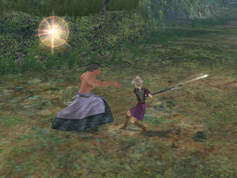 両手持ちになって、えーいって振り回すアクションになってた!><b