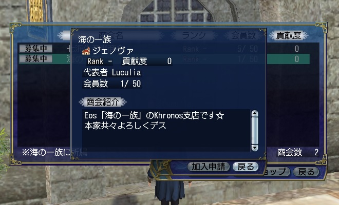 所属商会:海の一族@ジェノヴァ