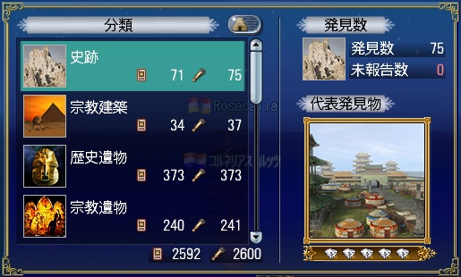 アプデ前なので、残りはクエが二つと地図発見と地図なし天文発見がいくつかと